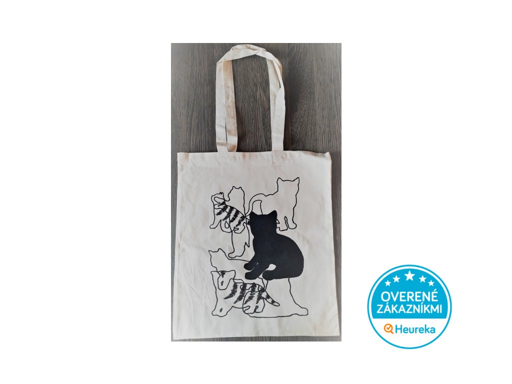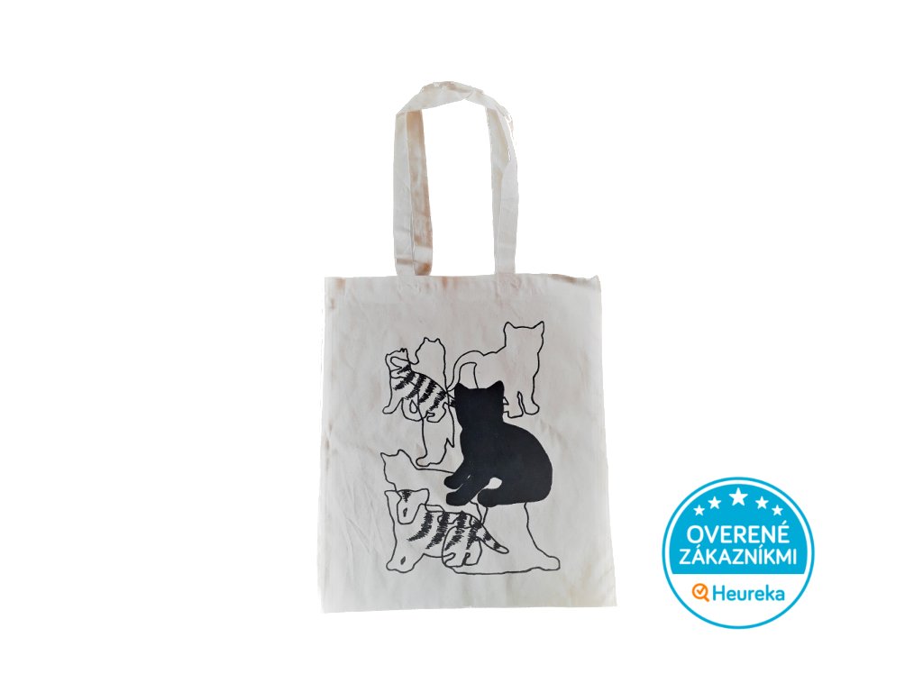 Ekologická nákupná taška z EKO bavlny so štýlovým motívom čiernobielych mačičiek sa vmestí do každej kabelky i vrecka. Mačky postrážia váš nákup aj peňaženku.