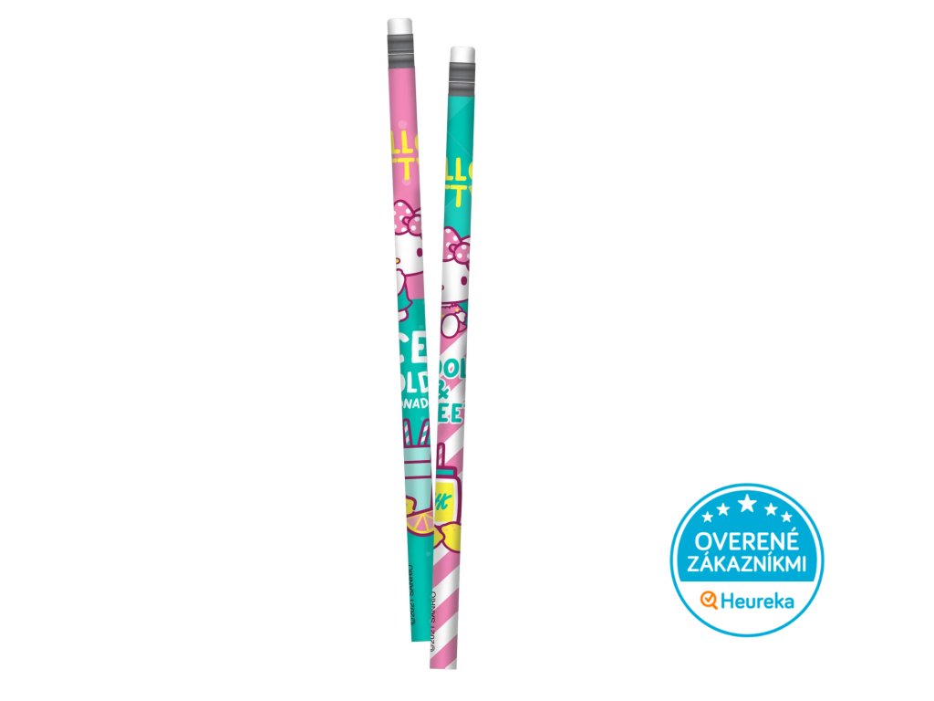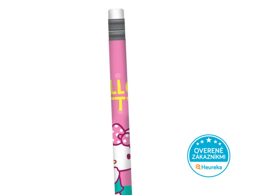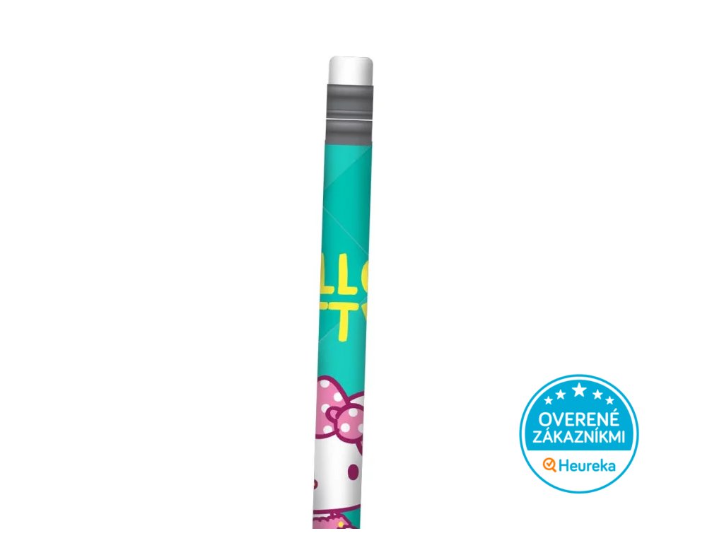 Klasická ceruzka s gumou s motívom obľúbenej mačičky Hello Kitty, v ružovej alebo zelenej farbe. Tvrdosť č. 2. Perfektná do peračníka aj na poznámky.