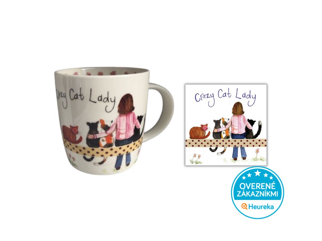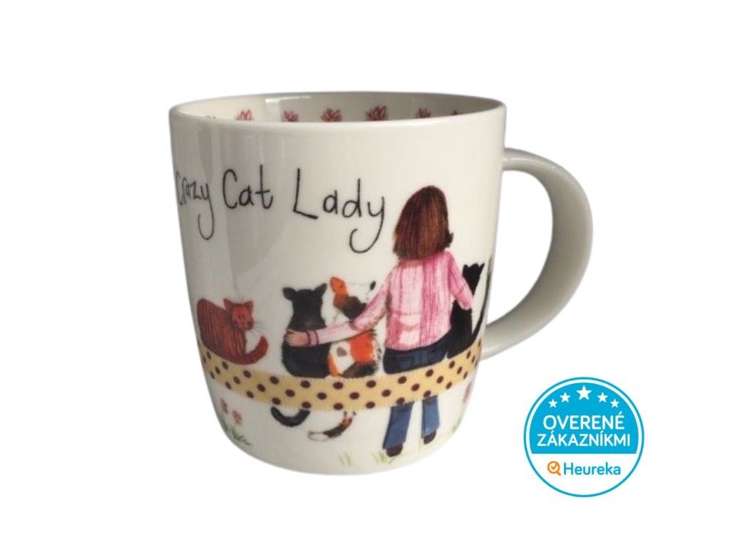 - veľký hrnček z anglického porcelánu s kreslenými mačkami, mačacou dámou a nápisom "Crazy Cat Lady", s motívom margaréty a na ušku