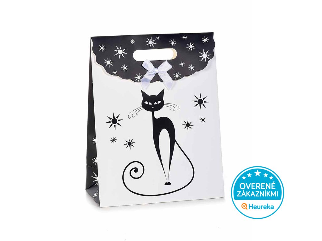 Darčeková taška s čiernou mačkou - biela, čiernobiela