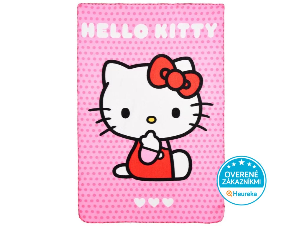 Hebká obšitá fleecová deka s obľúbeným mačiatkom Hello Kitty . Malú aj veľkú milovníčku mačiek zahreje na tele i na duši. Zababušte sa!