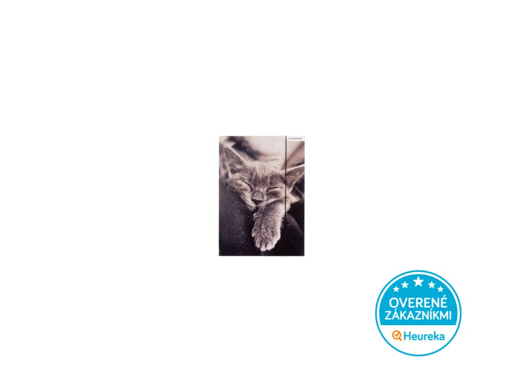 Dosky do školy alebo do kancelárie vo veľkosti A4 s rozkošným spiacim mačiatkom. S gumou, ktorá bráni otvoreniu, s laminovým umývateľným povrchom.