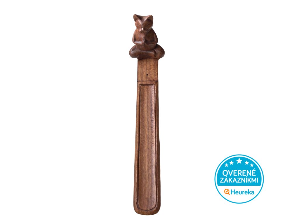 Drevený stojan na vonné tyčinky s meditujúcou mačkou