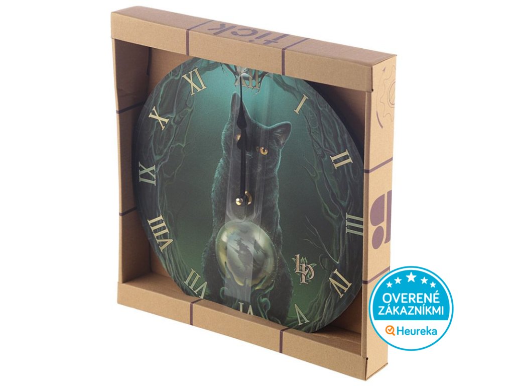 Magické a tajomné mačacie nástenné hodiny s čiernou mačkou vám vždy presne odmerajú čas. V dizajne autorky Lisy Parker.