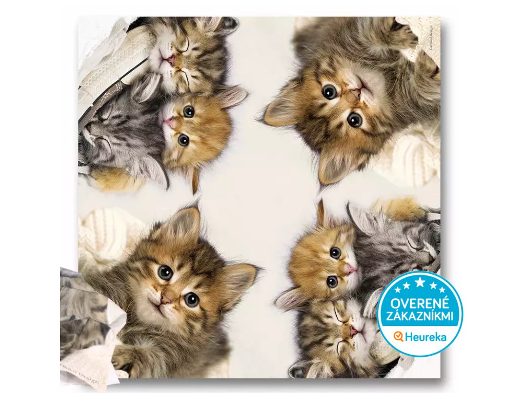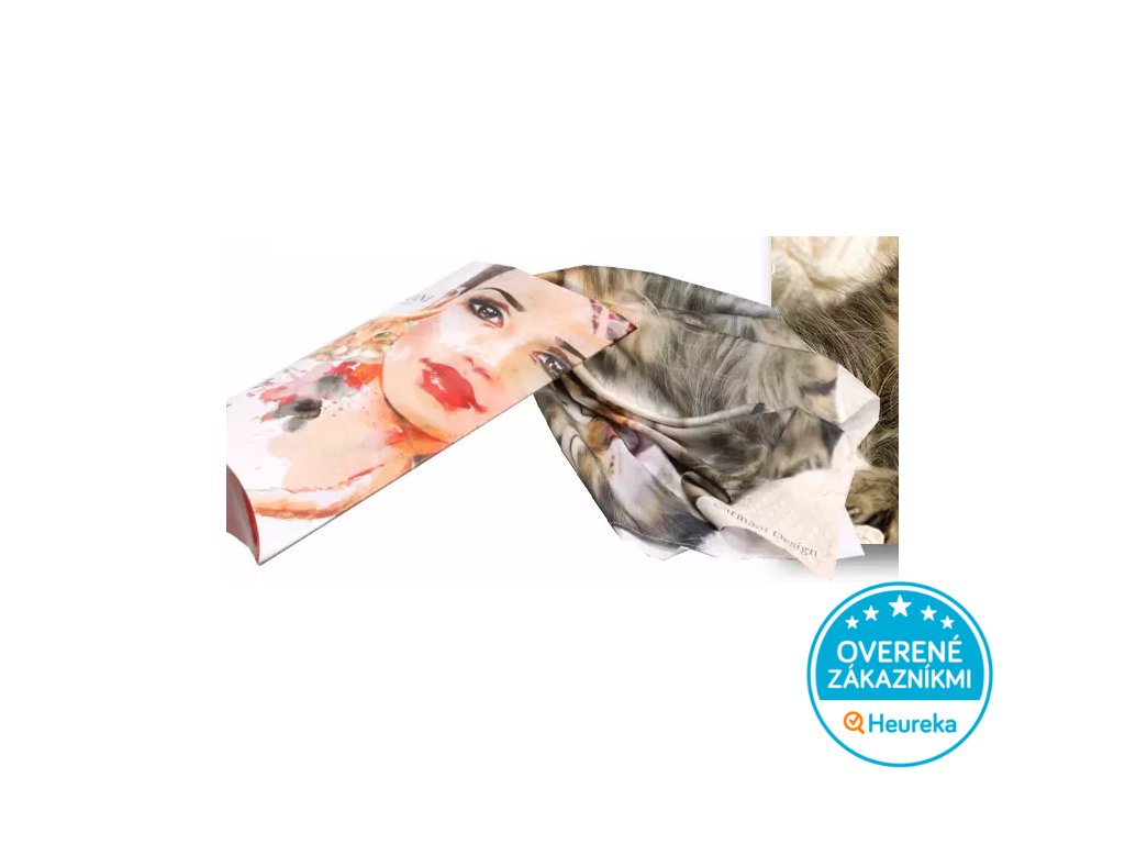 Veľká šatka (73 x 73 cm) s krásnym motívom mačičiek skvele doplní menej výrazný outfit. Vyzerá parádne okolo krku aj ako ochrana vlasov pred vetrom. V darčekovej krabičke.