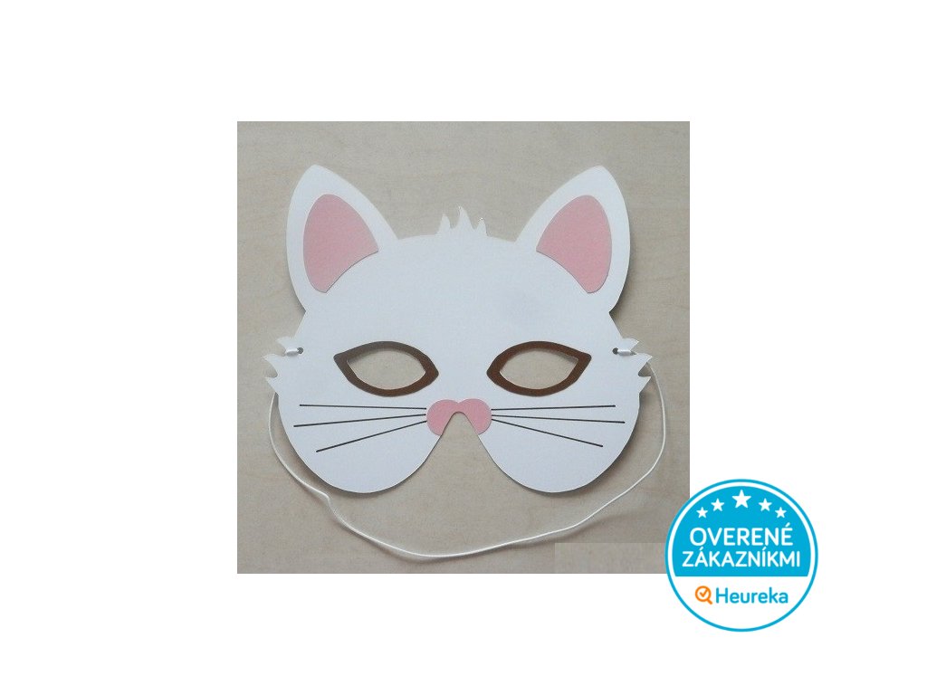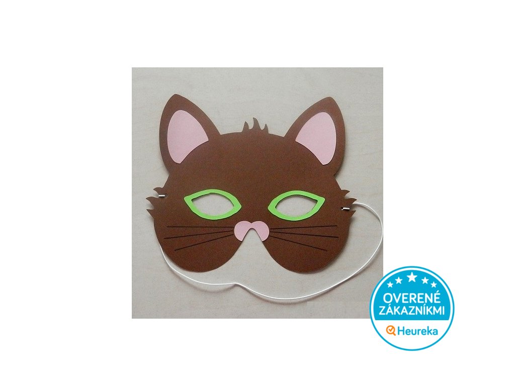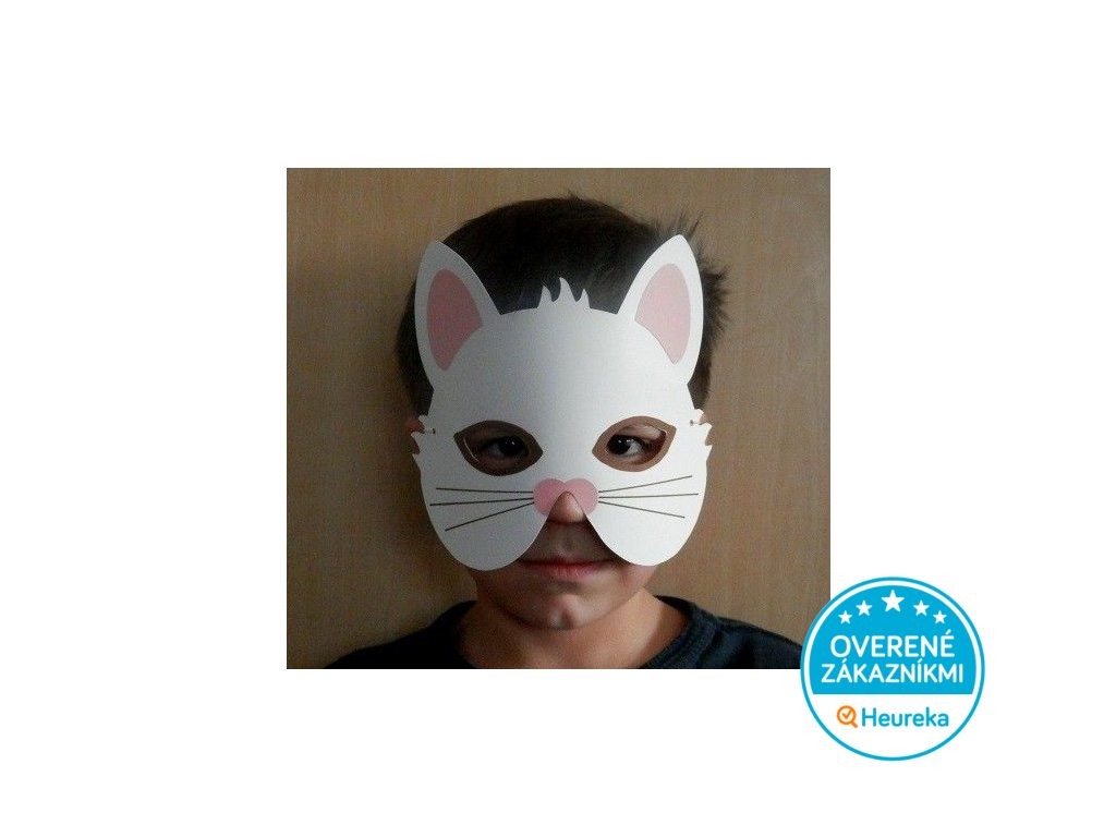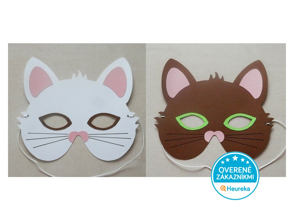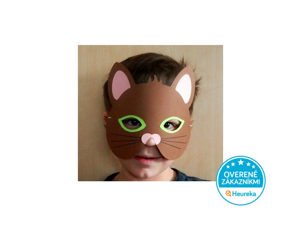 Sada obsahuje výrezy z farebného kartónu (5ks), ktoré nalepíte na základňu masky, domalujete fúziky, pripevníte gumičku a máte hotovo.