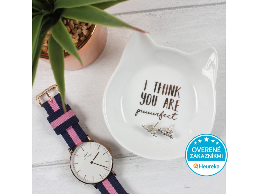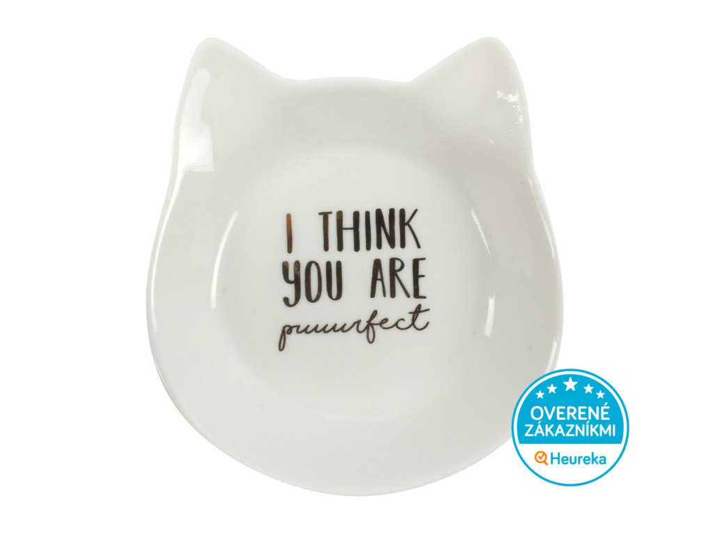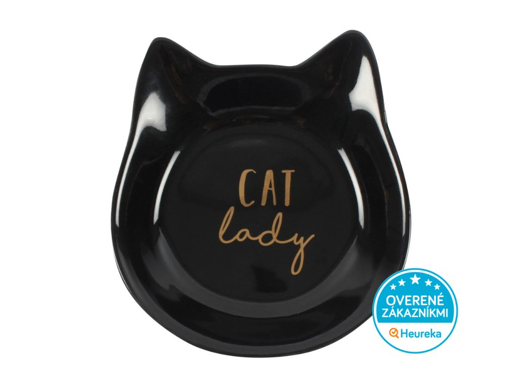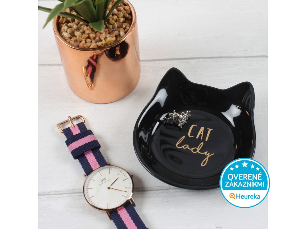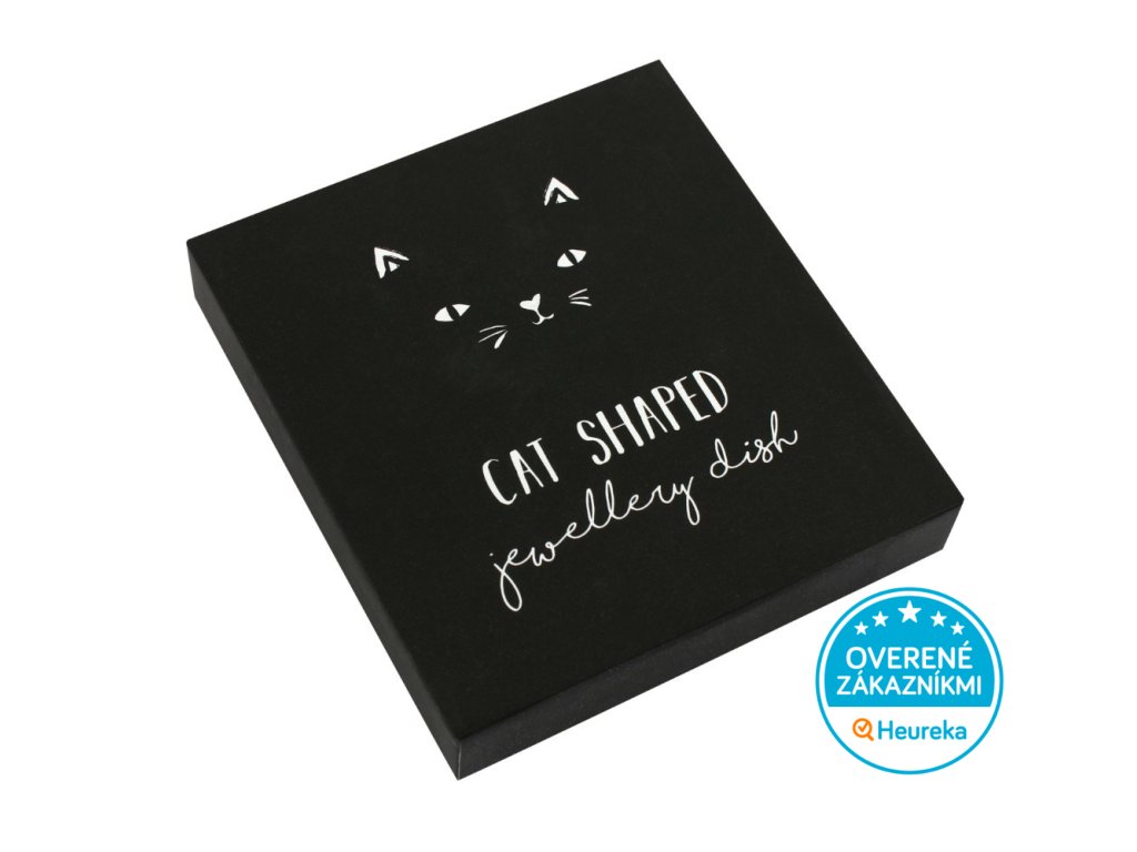 Praktická nevyhnutnosť každej mačacej dámy - odkladacia miska na šperky v tvare čiernej alebo bielej mačacej hlavy so zlatým nápisom. V darčekovej krabičke.