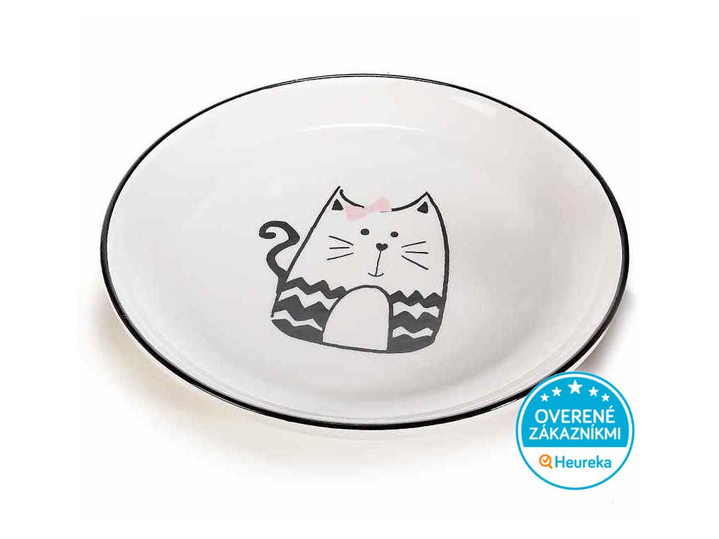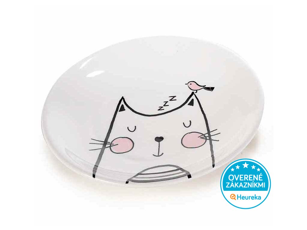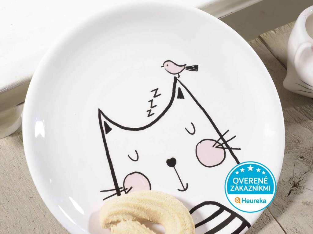 Keramický tanier na raňajky aj desiatu s kreslenou mačičkou, ktorá jedlo postráži, ale nezje. Všetko bude hneď chutiť o mačací chlp lepšie!