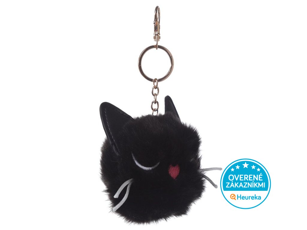 Kľúčenka s čiernou mačkou s ružovým ňufákom