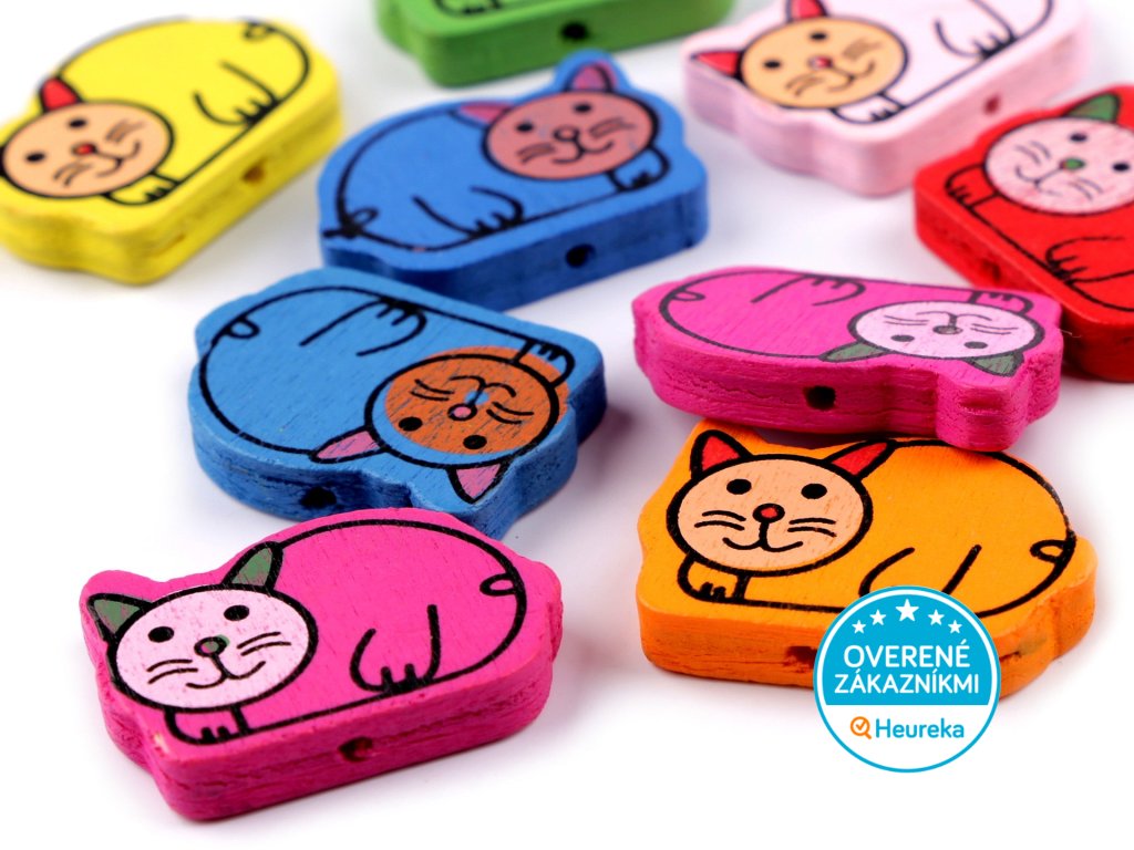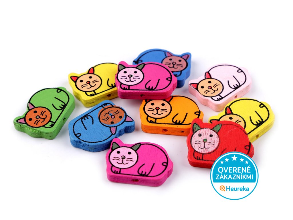 10 ks drevených korálikov s ležiacou mačičkou, v pestrých farbách. Parádny darček pre radosť milovníka mačiek.