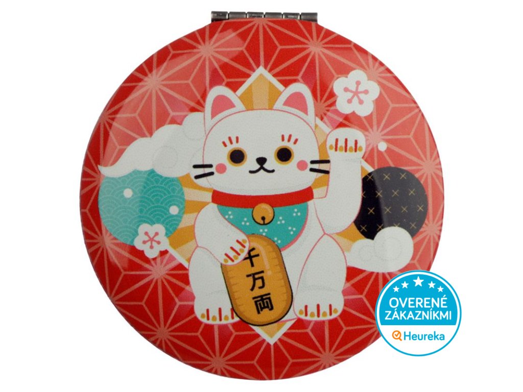 Praktická vychytávka do každej kabelky - zrkadlo, pinzeta a pilník na nechty s japonskou mačičkou pre šťastie Maneki Neko (Lucky Cat). Parádny mačací darček pre veľké i malé mačacie dámy.