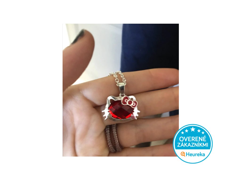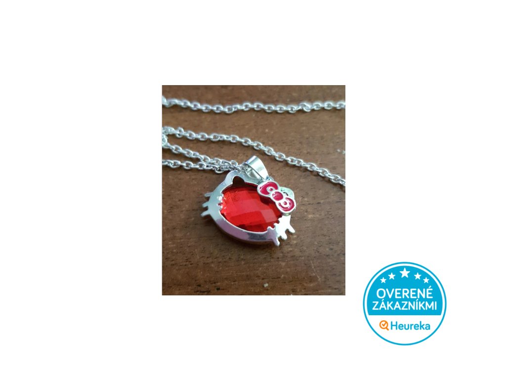 Trblietavý červený prívesok na retiazke v tvare obľúbenej Hello Kitty s mašličkou. Krásny darček pre malé i veľké mačky.