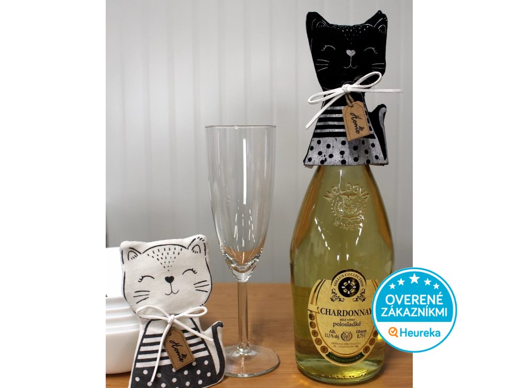 Vtipná látková dekorácia v tvare mačičky skvele padne na fľašu niečoho dobrého alebo na poličku v mačacej domácnosti. Vtipný doplnok pre milovníka mačiek. V čiernej alebo bielej.