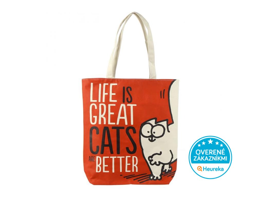 Priestranná taška cez rameno perfektná pre milovníkov Simonovej mačky. Poslúži na nákupy, do práce i na rande. Pretože "Life is Great Cats are Better"! :-)