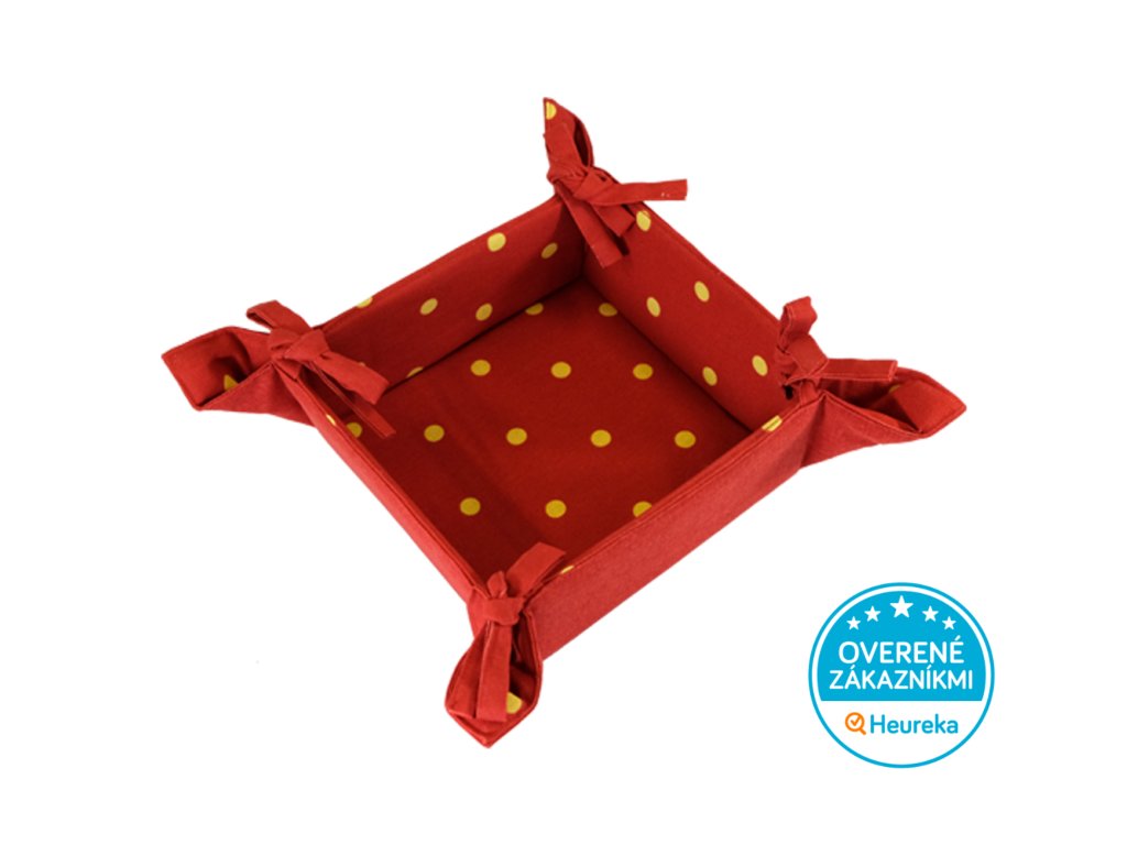 Látkový mačací košík na mašle zdobia zvonku čierna mačička a zvnútra bodky. Na kľúče či iné drobnosti - postavte ho, kam chcete, všade mu to pristane.
