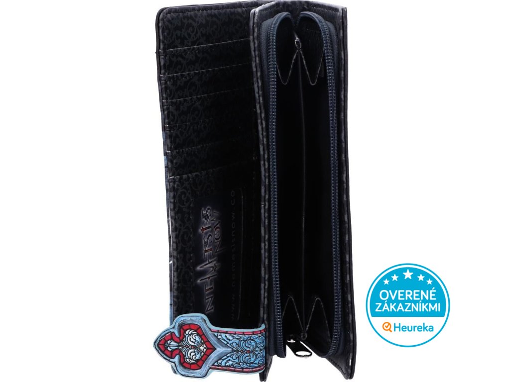 Krásna, veľká a perfektne remeselne spracovaná peňaženka s mačičkou a pentagramom v dizajne Lisa Parker. Obsahuje 12 priehradok na karty (jedna transparentná), 2 vnútorné priehradky, veľkú delenú hlavnú priehradku na zips a priehradku na bankovky. Vaše peniaze, doklady a karty ešte nikdy nemali lepšie púzdro!