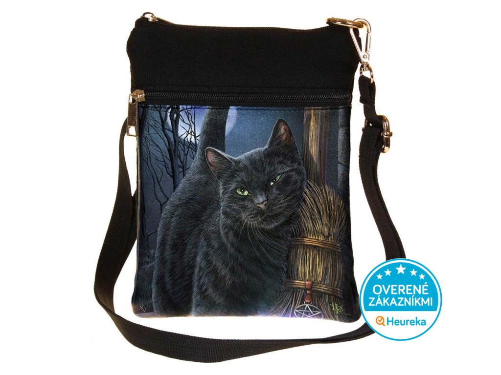 Originálna perfektne remeselne spracovaná kabelka cez rameno s mačičkou a metlou v dizajne Lisa Parker. Štýlová taška obsahuje 2 vrecká so zipsom - väčšie a menšie. Perfektné na rande alebo do mesta.