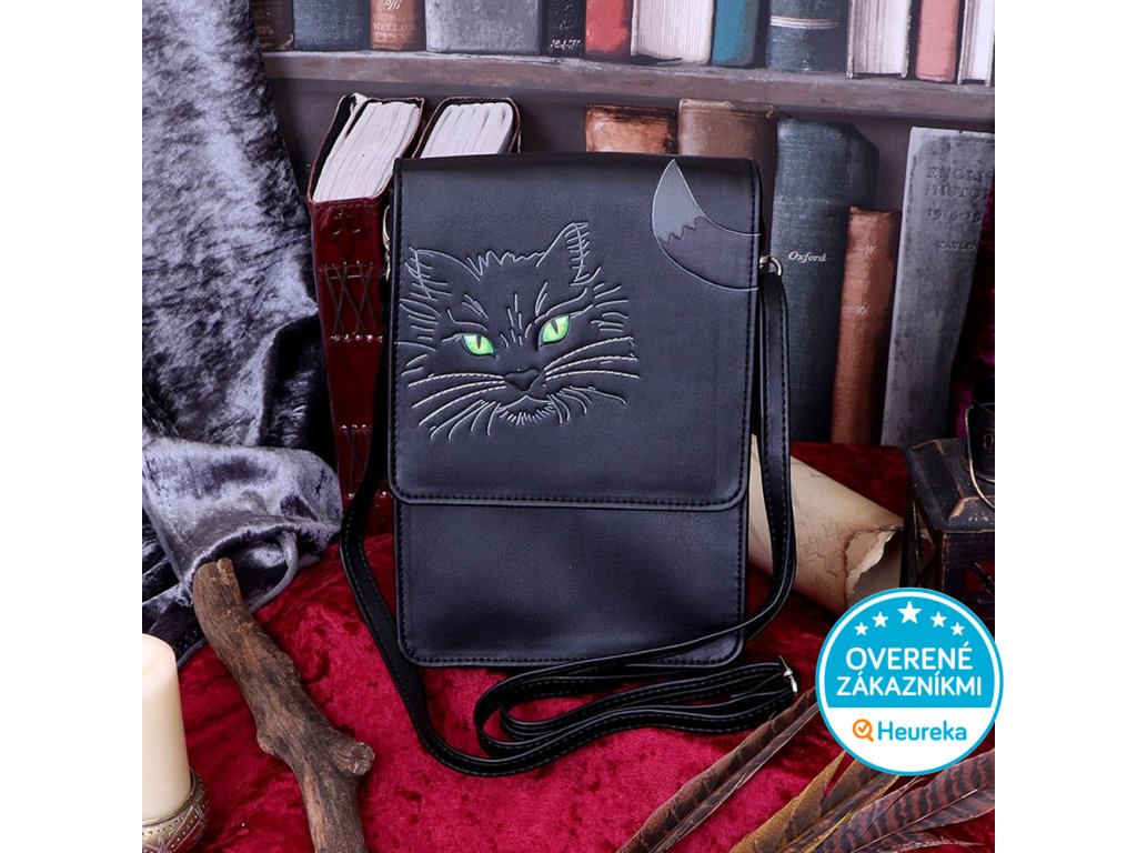 Štýlová skvele prepracovaná kabelka cez rameno s plastickou čiernou mačkou spredu aj na zadnom vonkajšom vrecku na mobil. Perfektné na rande alebo do mesta pre všetky milovníčky mačiek.