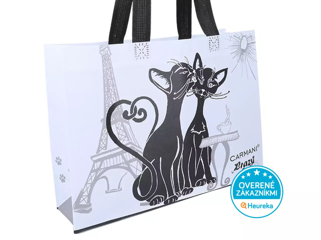 Veselá taška so zamilovanými mačkami na malý nákup, desiatu, alebo je tiež skvelá ako darčeková taška. Tieto mačičky jednoducho potešia!