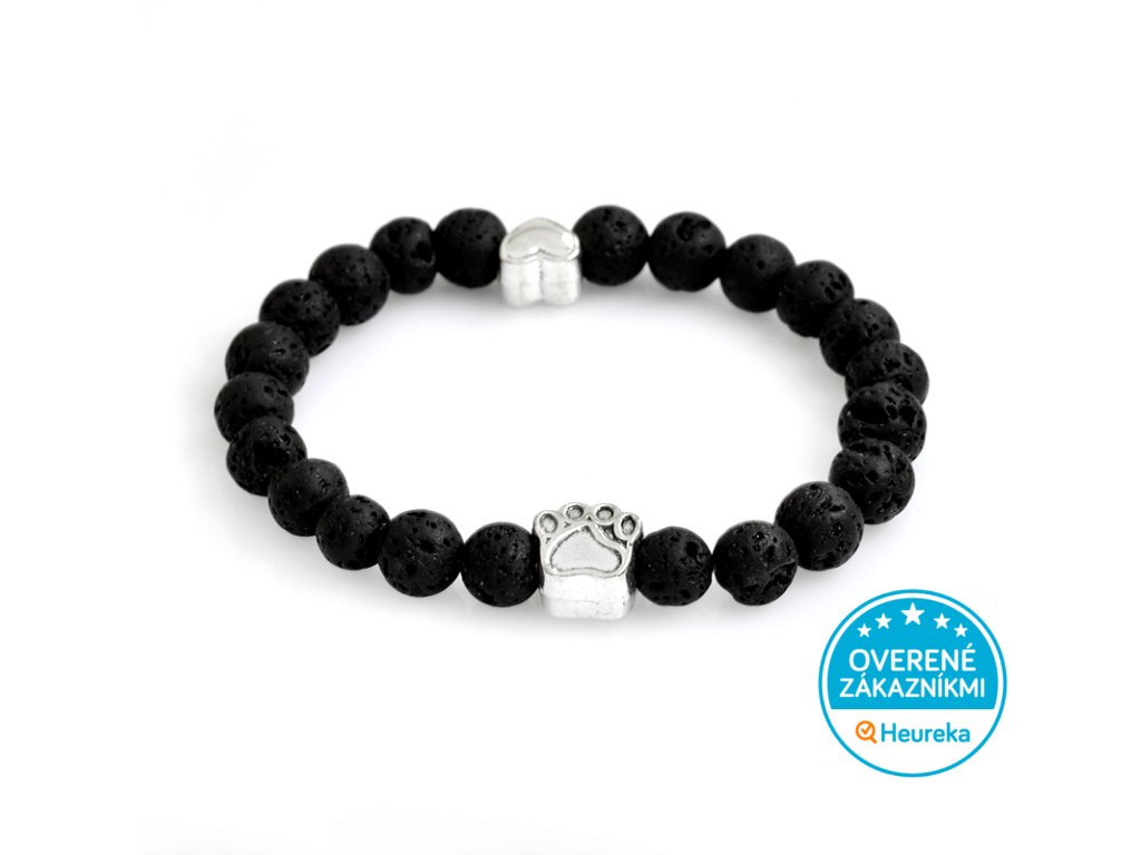 Minerálny náramok mačacia labka a srdiečko - prírodná láva