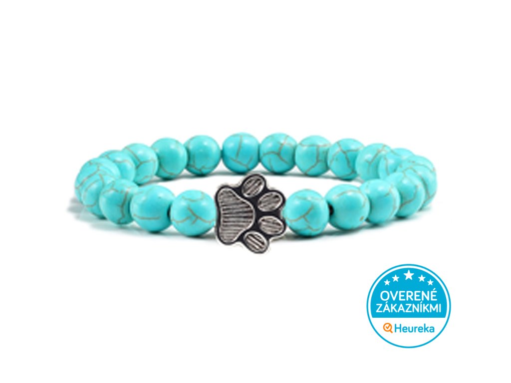 Minerálny náramok z tyrkysu s mačacou labkou. Tyrkys je najúčinnejší liečivý kryštál. Prináša zotavenie ducha i pohodu tela. Jedná sa o ochranný kameň používaný od nepamäti na amulety. Údajne dokáže zmeniť aj farbu, aby svojho majiteľa varoval pred nebezpečenstvom nevery. Umožňuje duchovné naladenie a zlepšuje komunikáciu medzi hmotným a duchovným svetom.
