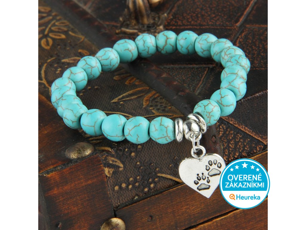 Minerálny náramok srdiečko a mačacie labky - tyrkys