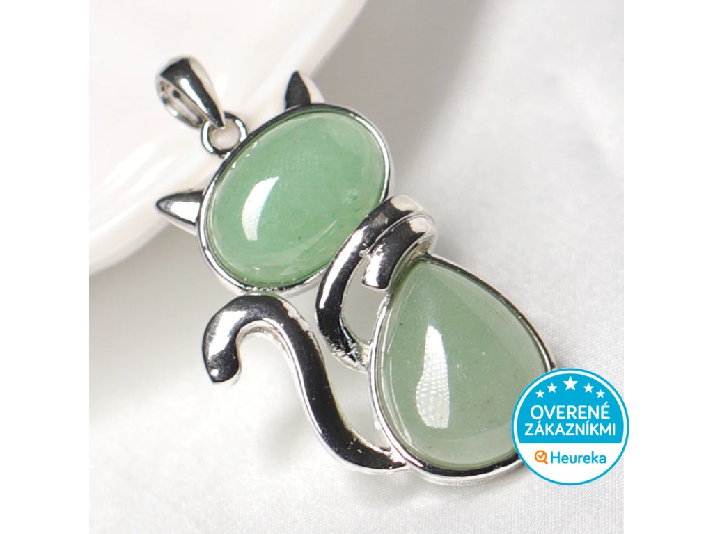 Prívesok v tvare mačky s dvoma avanturínmi. Avanturín pomáha nadviazať vzťah s prírodou, s jej upokojujúcou silou a harmóniou. Avanturín vám prinesie pokoj, zaženie chmúry a vymaže negatívne myšlienky. Avanturín je tiež kameň šťastia, pozitívne ovplyvňuje všetko spojené s prosperitou a majetkom.