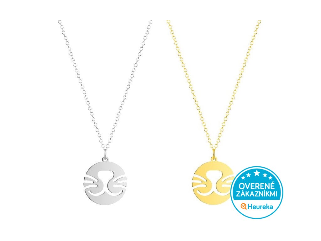 Náhrdelník s oceľovou mačkou s ňufáčikom - strieborný, zlatý