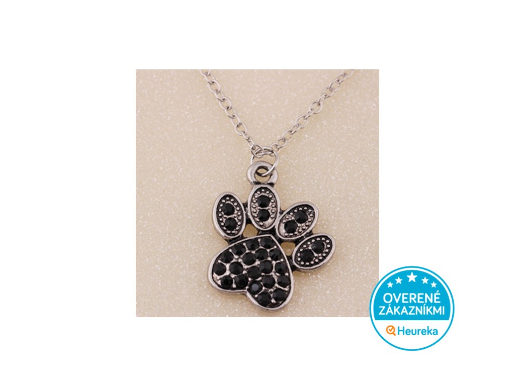 Prívesok s čiernou labkou z kryštálov na jemnej retiazke - mačka vo vašom srdci si ju zamiluje!