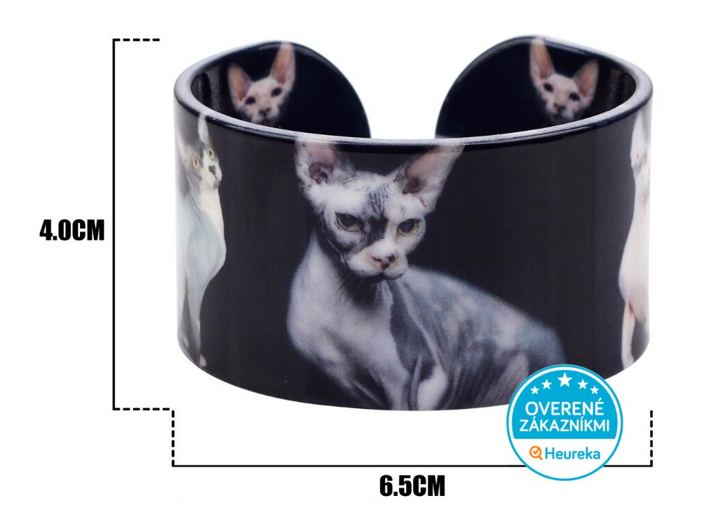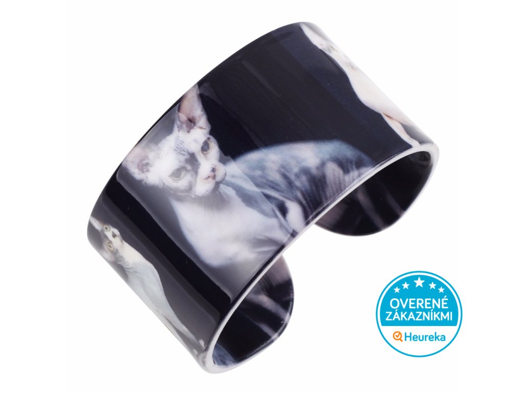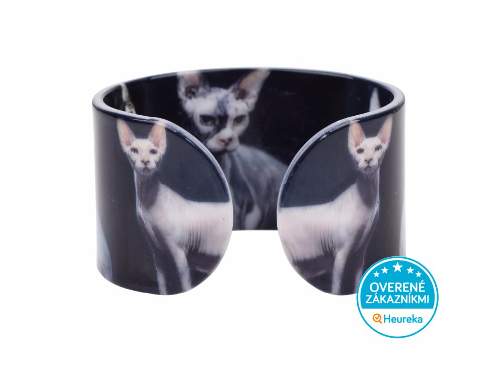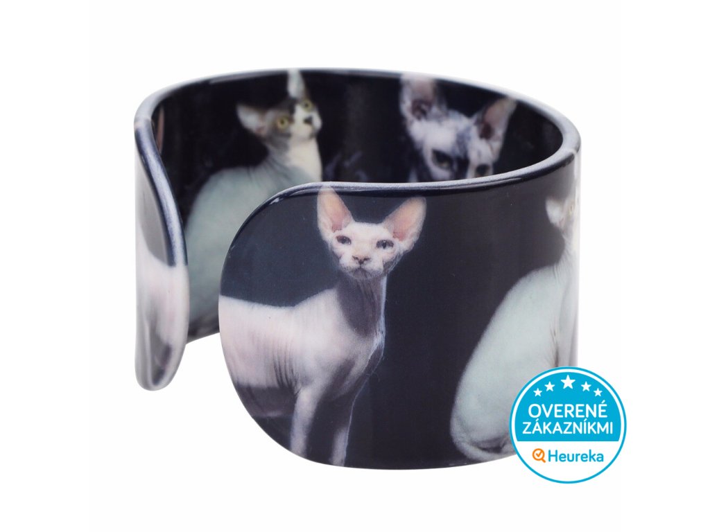 Elegantná mačka sphynx vonku i vo vnútri štýlového mačacieho náramku z odolného akrylu. Krásny doplnok pre milovníčku mačiek.