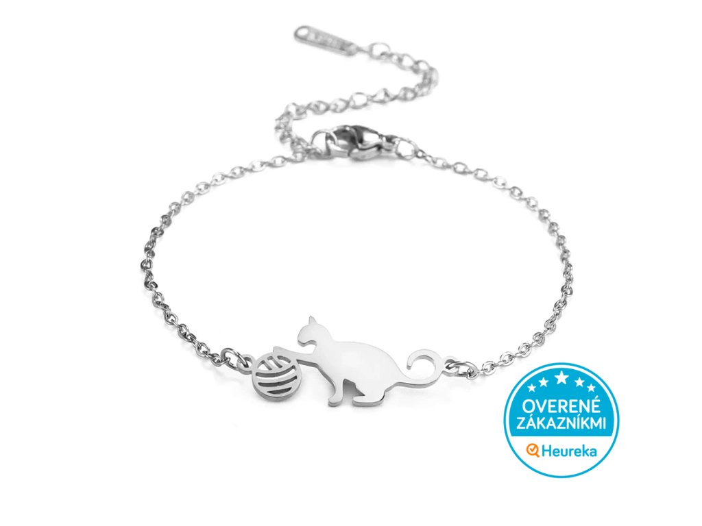 Veselý náramok s mačičkou a klbkom z leštenej chirurgickej ocele. Parádny mačací doplnok na každodenné nosenie aj na slávnostné príležitosti. Krásny darček.
