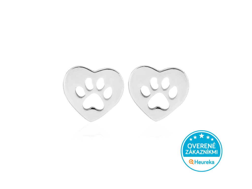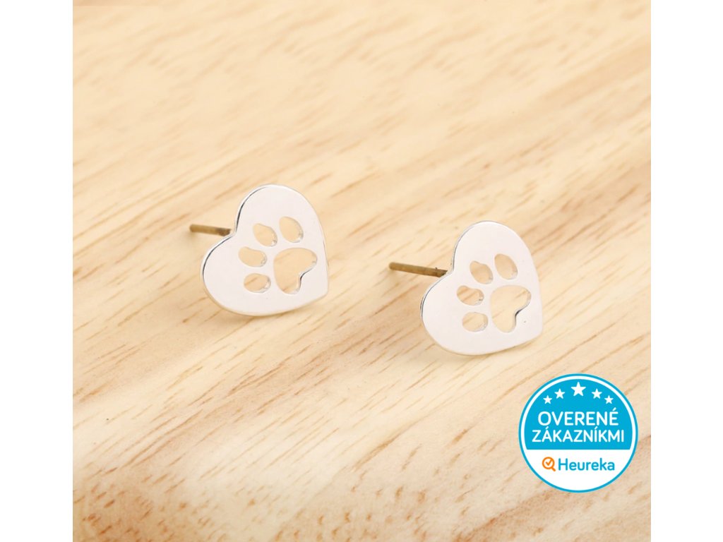 Krásne mačacie náušnice v tvare srdiečka s vyrazenou labkou. Nech je hneď vidieť, pre koho bije práve vaše srdiečko.