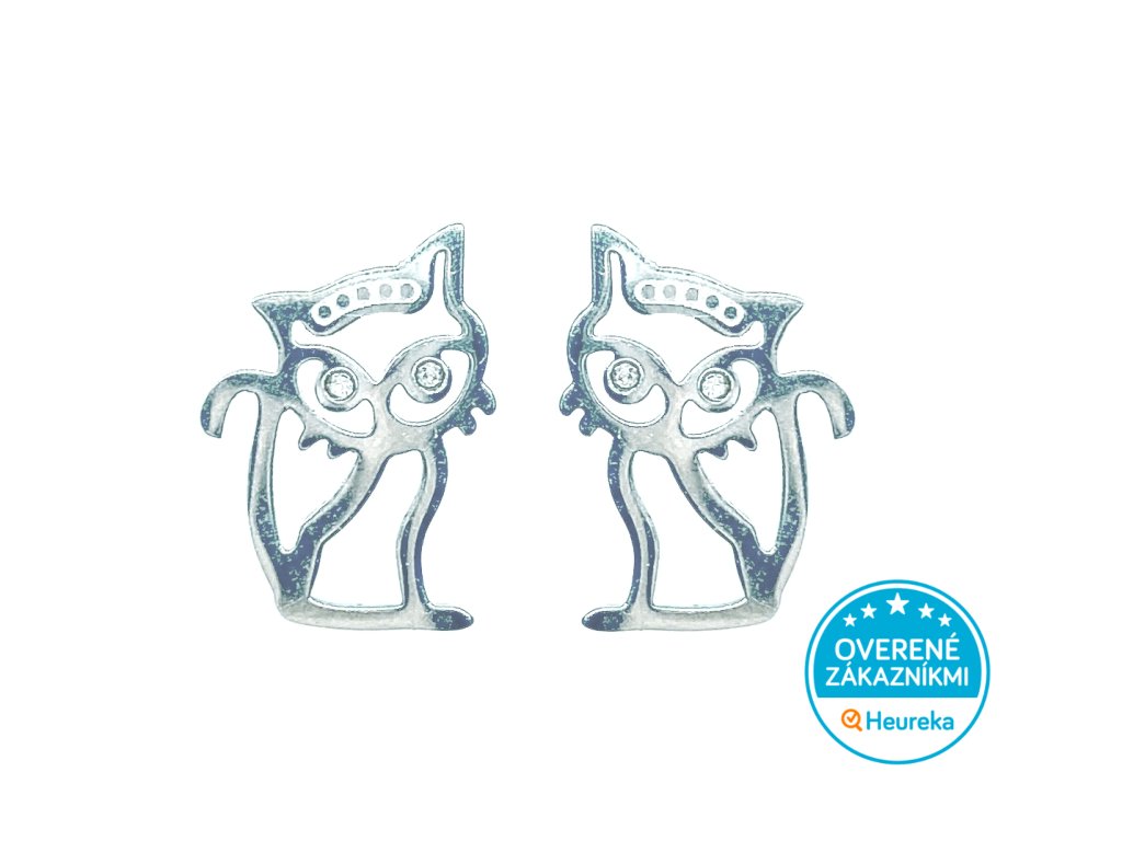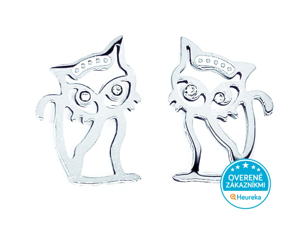 Krásne náušnice - zapichovačky s mačičkou so zirkonovými očami, s chirurgickej ocele. S tými určite zažiarite!