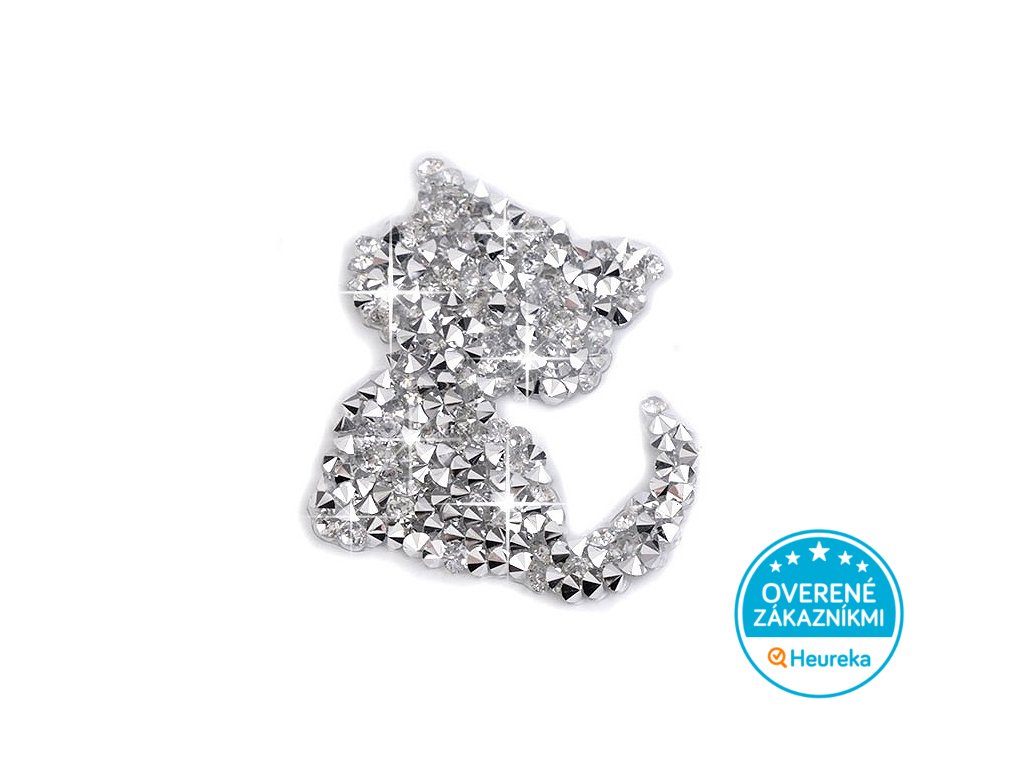 Originálna nažehlovačka v tvare bielej trblietavej mačky je celá vyrobená z brúsených sklenených kryštálov . V spodnej časti nažehlovačky je lepiaca vrstva, ktorá po nažehlení pevne drží na odeve. Parádny mačací doplnok na kabelku , batôžtek alebo napríklad bundu .