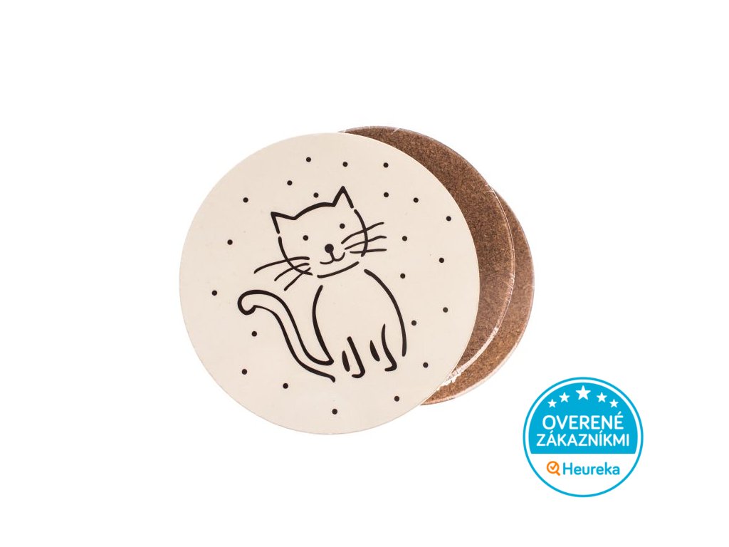Okrúhla podtácka s mačkami - korková sada 6 ks
