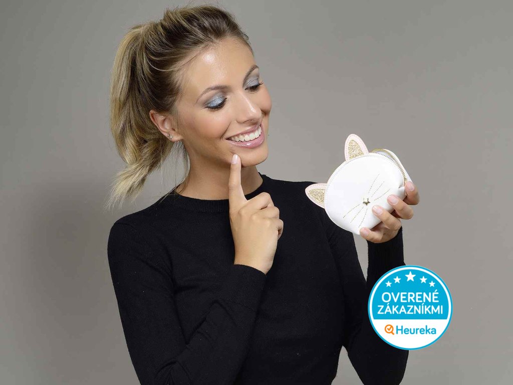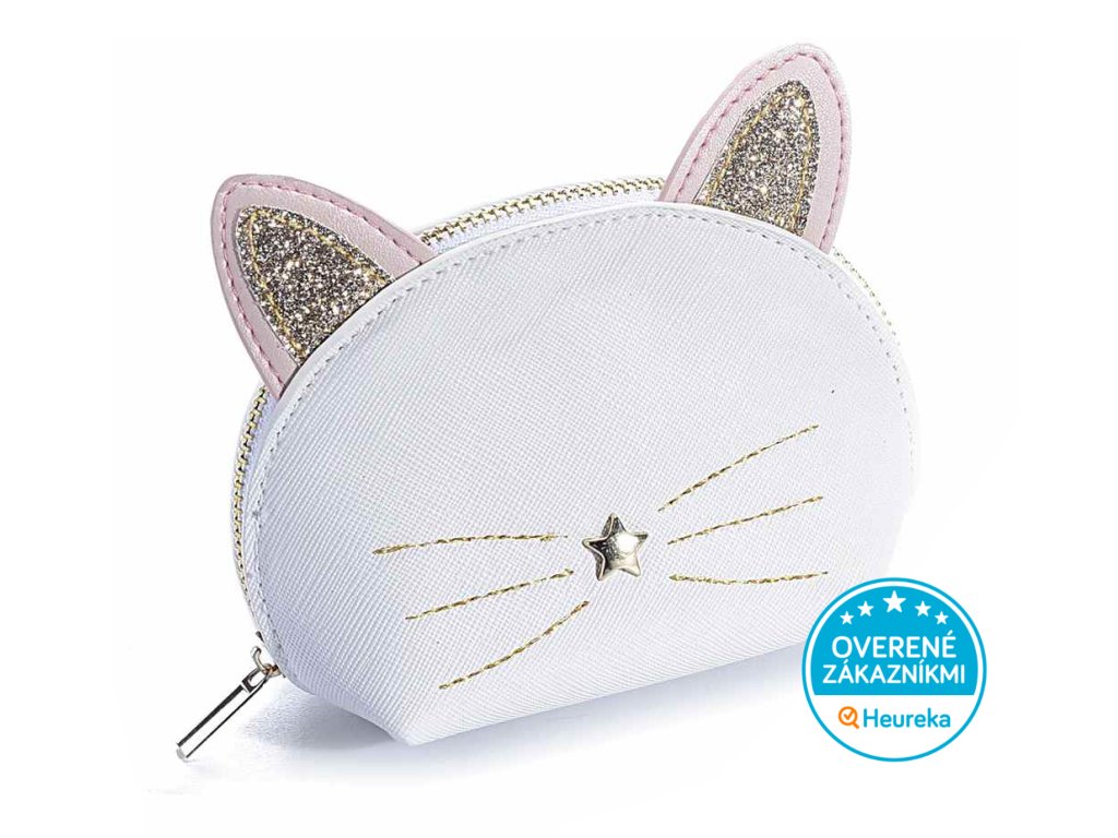 Peňaženka v tvare mačičky s ušami a ňufáčikom, so zapínaním na zips. Perfektná aj ako kľúčenka alebo na drobnú kozmetiku. V dvoch farebných variantoch - biela alebo čierna.