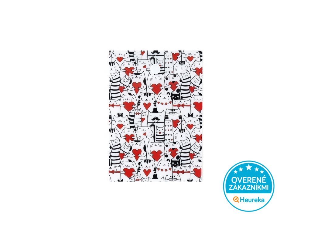 Mačky a srdiečka v podobe menšieho puzdra na doklady či dokumenty (formát A6), ktoré postrážia všetky mačacie tajomstvá. Zapínanie na cvoček.