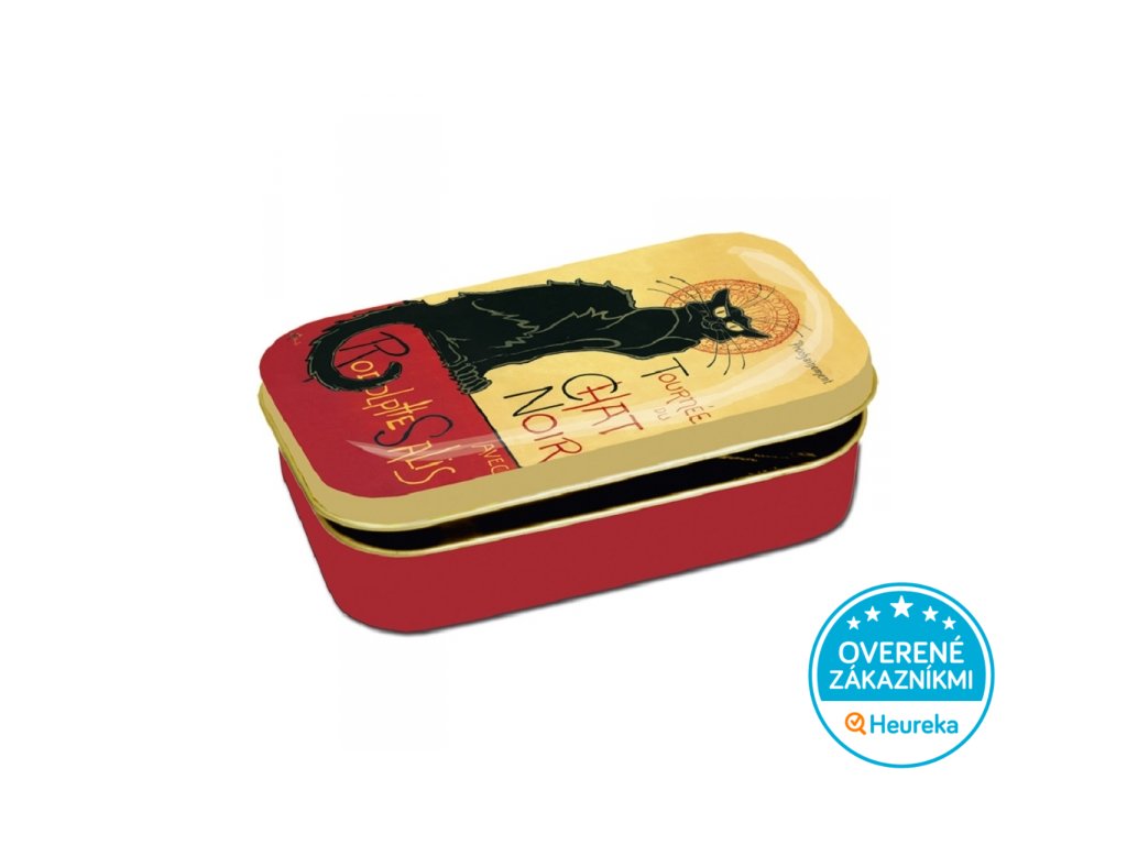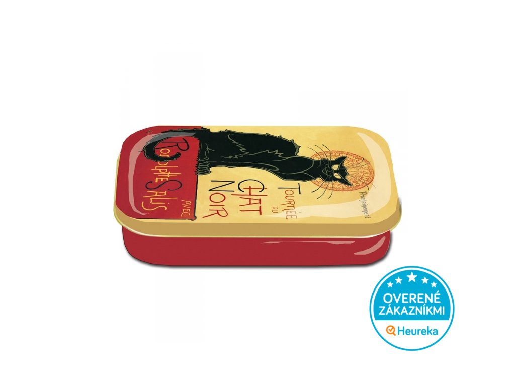 Plechová dóza s motívom legendárnehofrancúzskeho kabaretu Le Chat noir . Super na cukríky, lieky alebo napríklad ako KPZ. Tá niečo vydrží a čierny kocúr dohliadne, aby sa obsah nikam nestratil. Rozmer 9,5 x 6 x 2,7 cm.