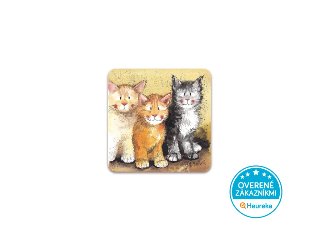 Dizajnová korková podšálka pod kávu aj čaj s tromi maľovanými kocúrmi od autorky Alex Clark. Perfektný darček pre radosť všetkým milovníkom mačiek.