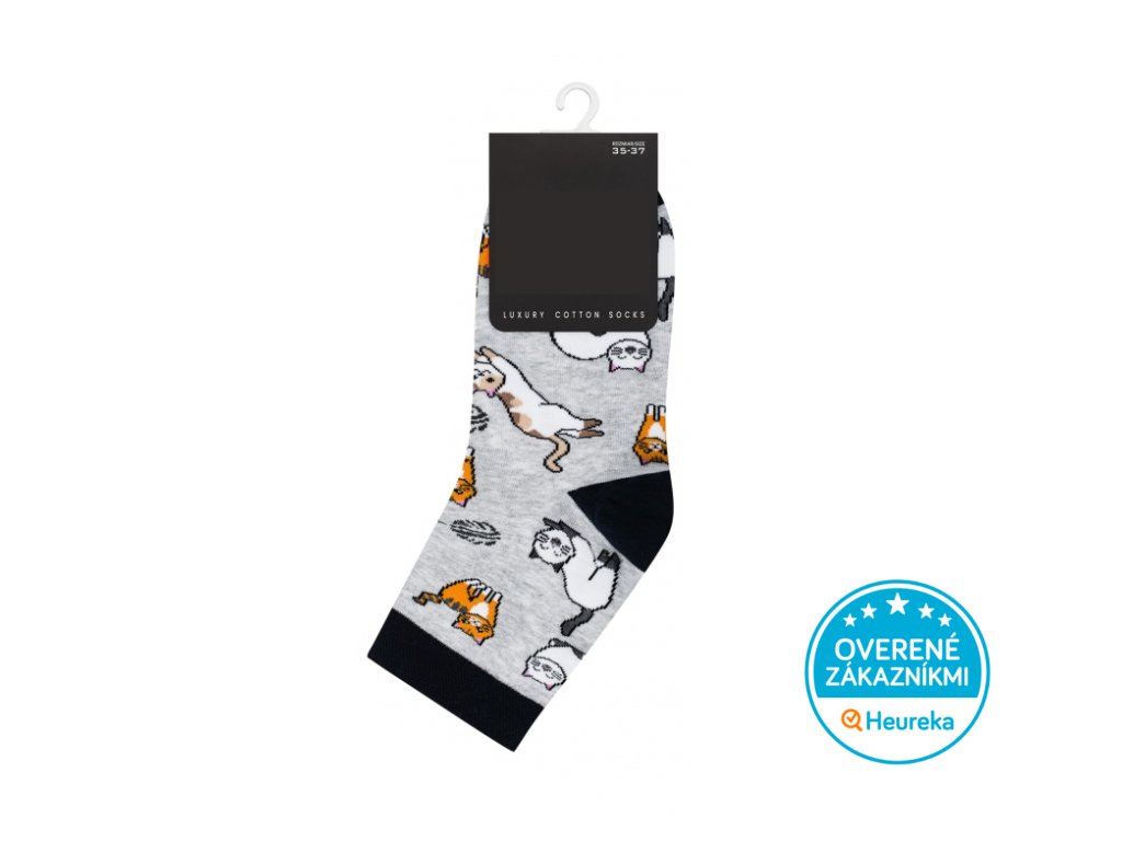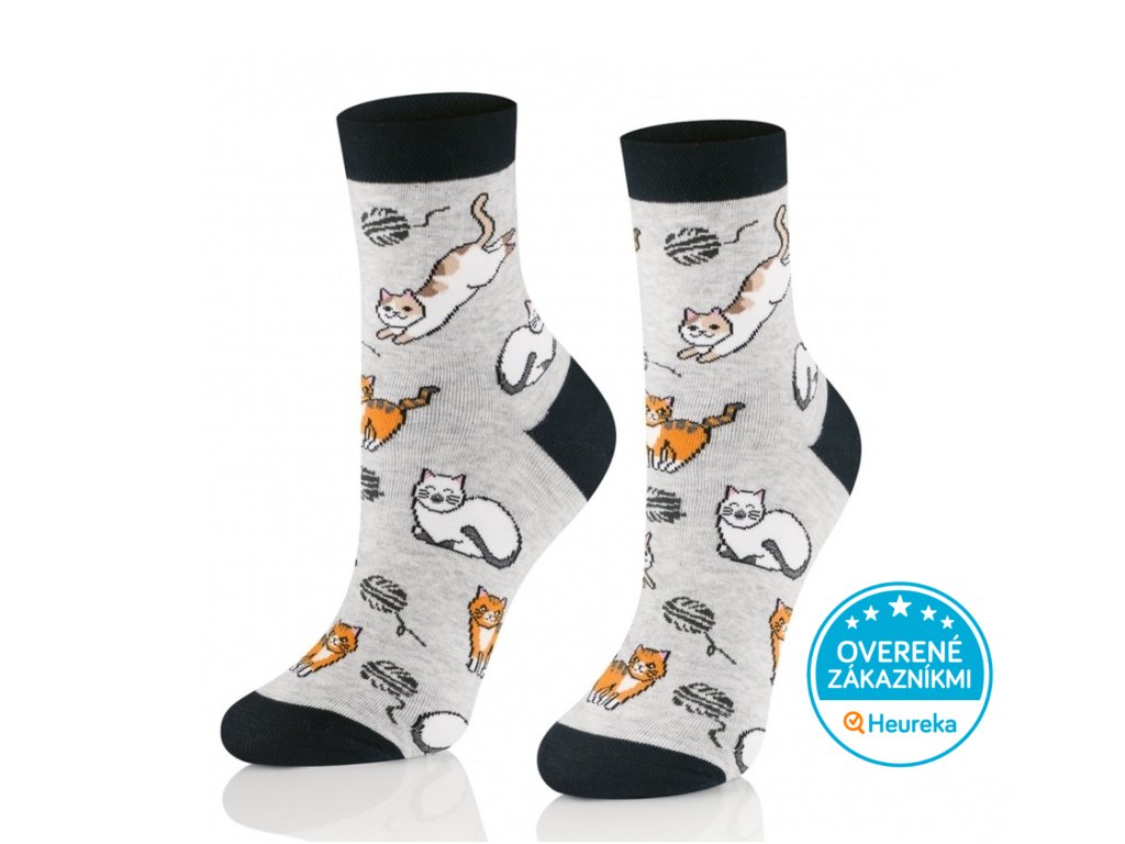 Veselé dámske ponožky s rozkokošenými mačičkami a klbkami zahrejú nôžky aj srdce každej milovníčky mačiek. Perfektný darček! Veľkosť 35-37 alebo 38-40.
