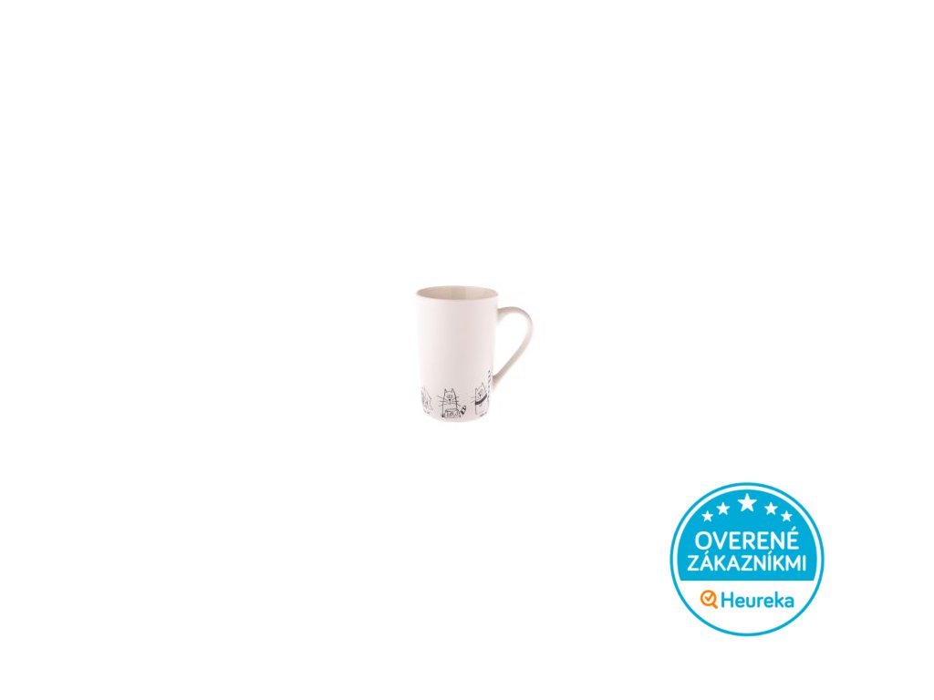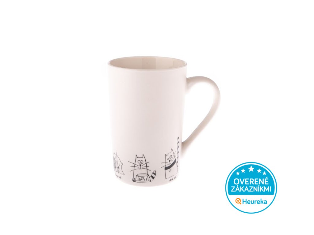 Veľký matný porcelánový hrnček so šiestimi kreslenými mačičkami je skvelý na čaj alebo na skutočne veľkú kávu. Perfektný do práce aj na doma.