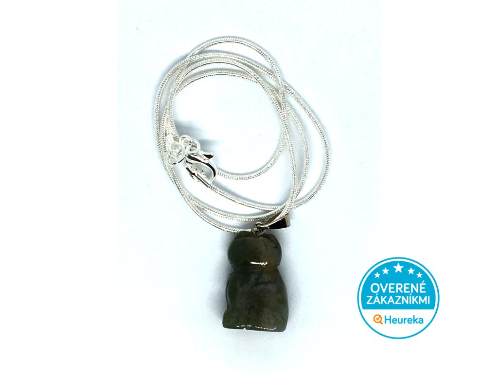 Ručne vyrezávaný prívesok z polodrahokamov a vzácnych minerálov v tvare mačičky, na retiazke. Pritiahnite k sebe trochu ochrannej mačacej mágie!