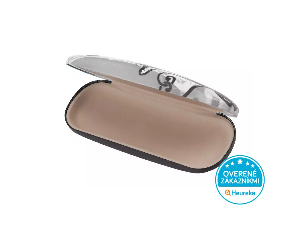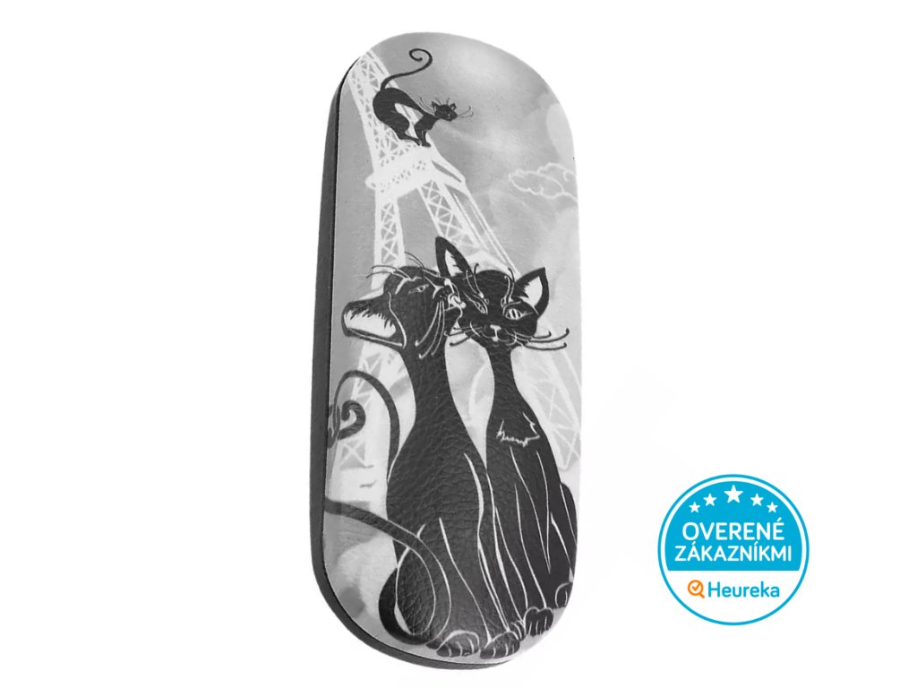 Štýlové dizajnové pevné puzdro na okuliare s dvoma zamilovanými mačičkami. Ochráni slnečné aj dioptrické okuliare. Originálny mačací doplnok v darčekovej krabičke.