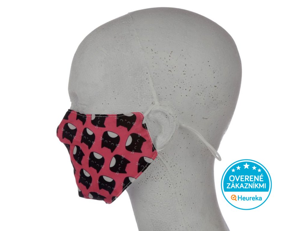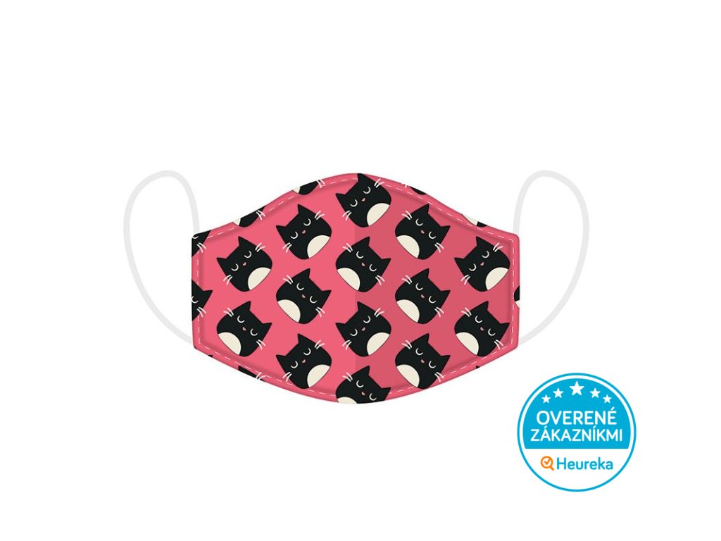 Dvojvrstvové textilné rúško s čiernymi mačkami, ktoré ochránia vás aj vaše okolie. Na gumičky za uši. Spoločne to zvládneme!