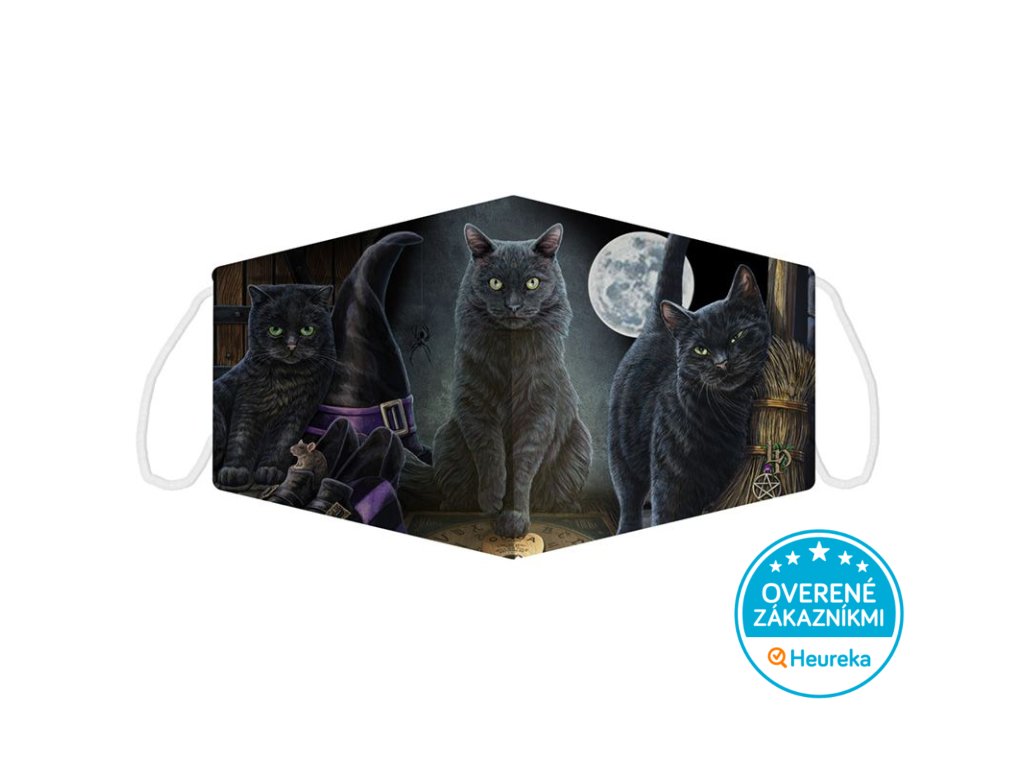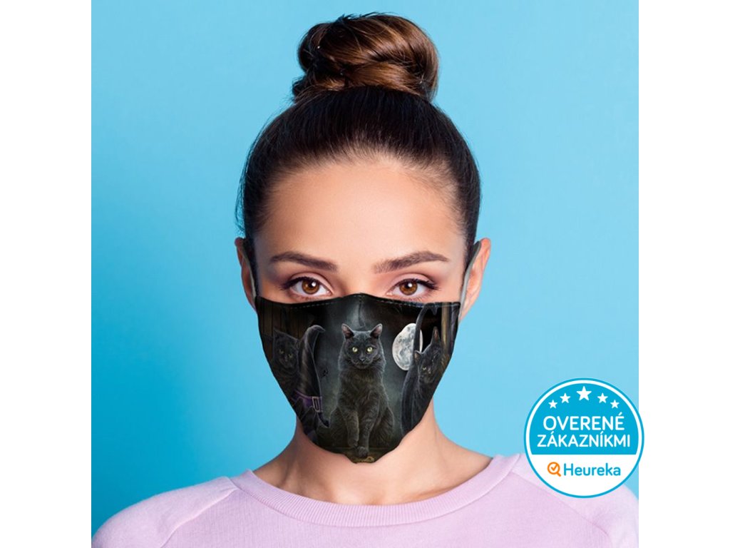 Dvojvrstvové textilné rúško s čiernymi mačkami v exkluzívnom dizajne autorky Lisy Parker. Tieto čierne mačičky ochránia vás i vaše okolie. Na gumičky za uši. Spoločne to zvládneme!