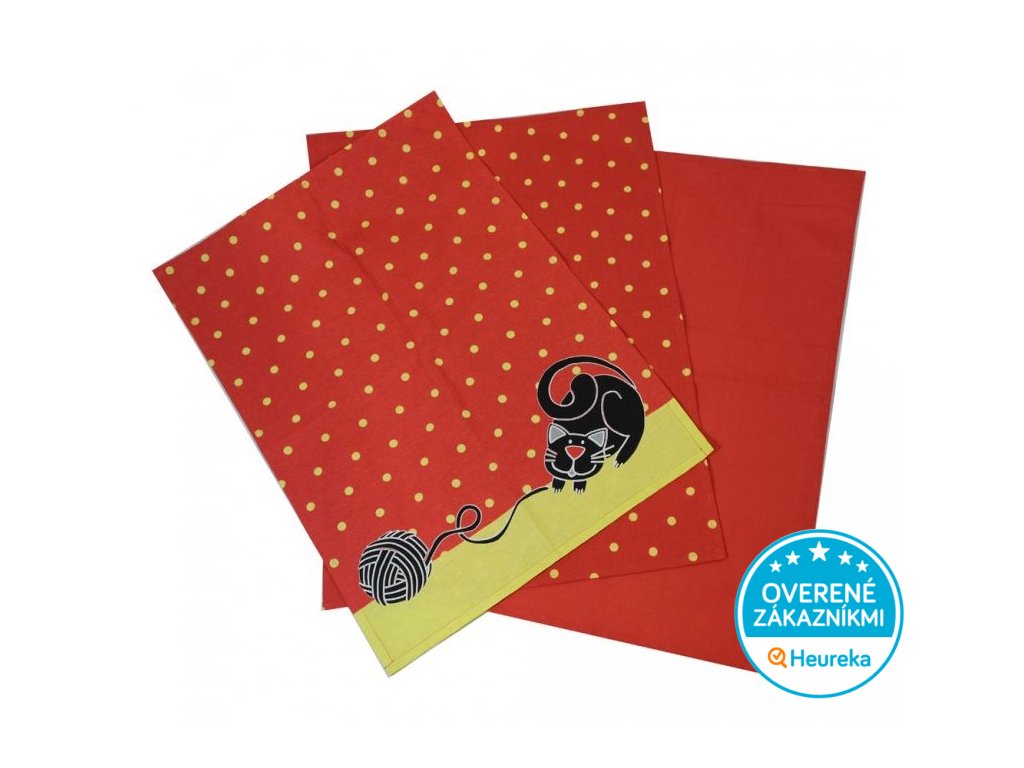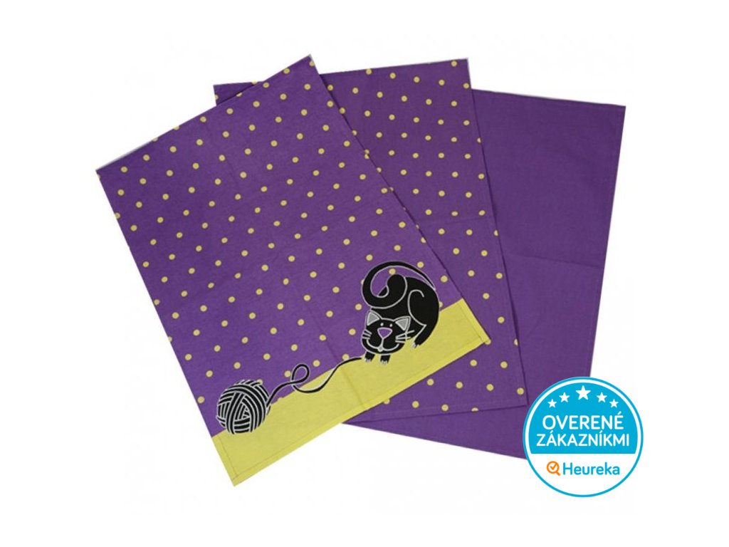 Krásny doplnok mačacej kuchyne - veselý set 3 veľkých utierok s mačkou, klbkom a zladenými motívmi. Perfektné na varenie i pečenie. Jedna utierka je s mačkou, jedna bodkovaná a jedna celofarebná.