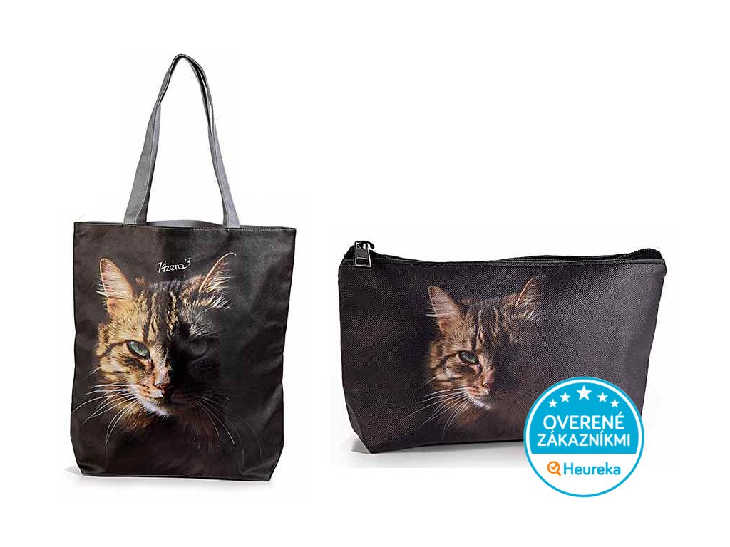 Súprava veľkej kabelky a dizajnovo zladeného kozmetického puzdra so zelenookou mačičkou. Perfektné do práce aj na rande. S týmito mačičkami budete neprehliadnuteľná!