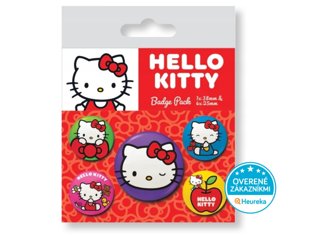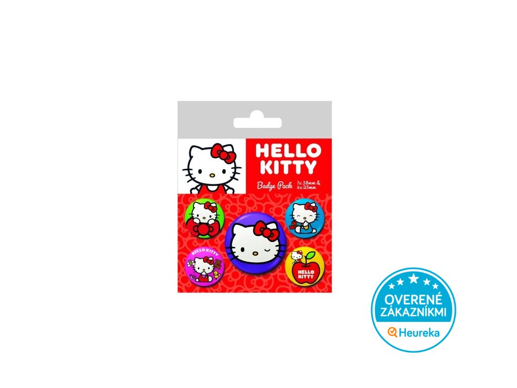 Set 5 odznakov - placiek s obľúbeným mačiatkom Hello Kitty. Krásne doladí váš outfit alebo dozdobí batoh či kabelku . Parádny darček pre jej malé milovníčky.