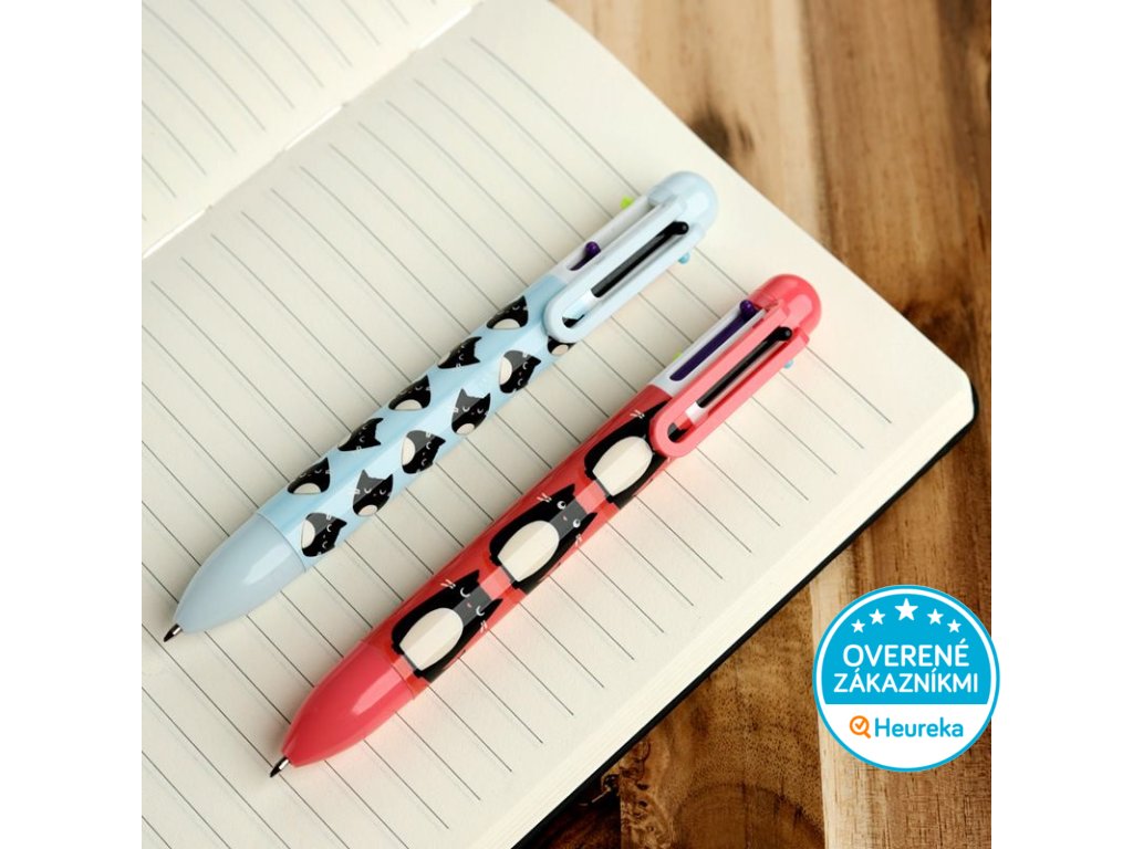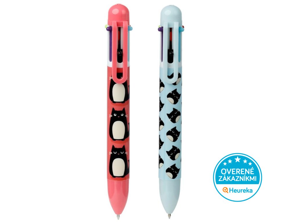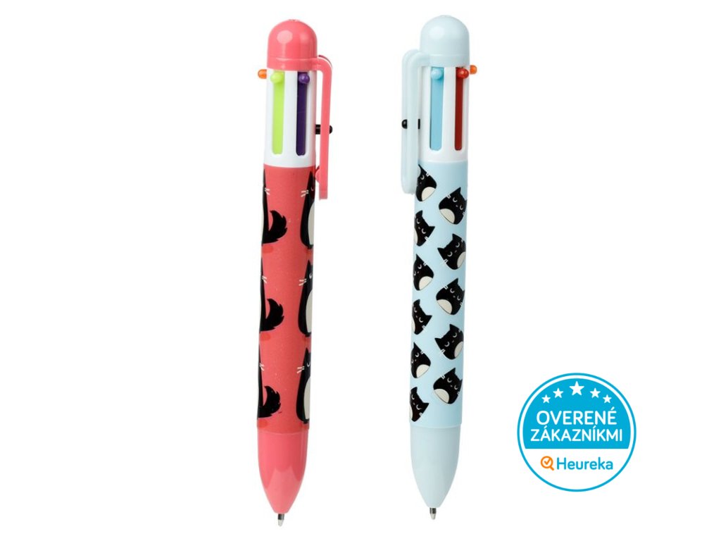 Veľké mačacie pero s motívom veselých mačičiek píše hneď 6 farbami. Nevyhnutná pomôcka každej kočky školáčky ! V červenej, alebo bledomodrej.