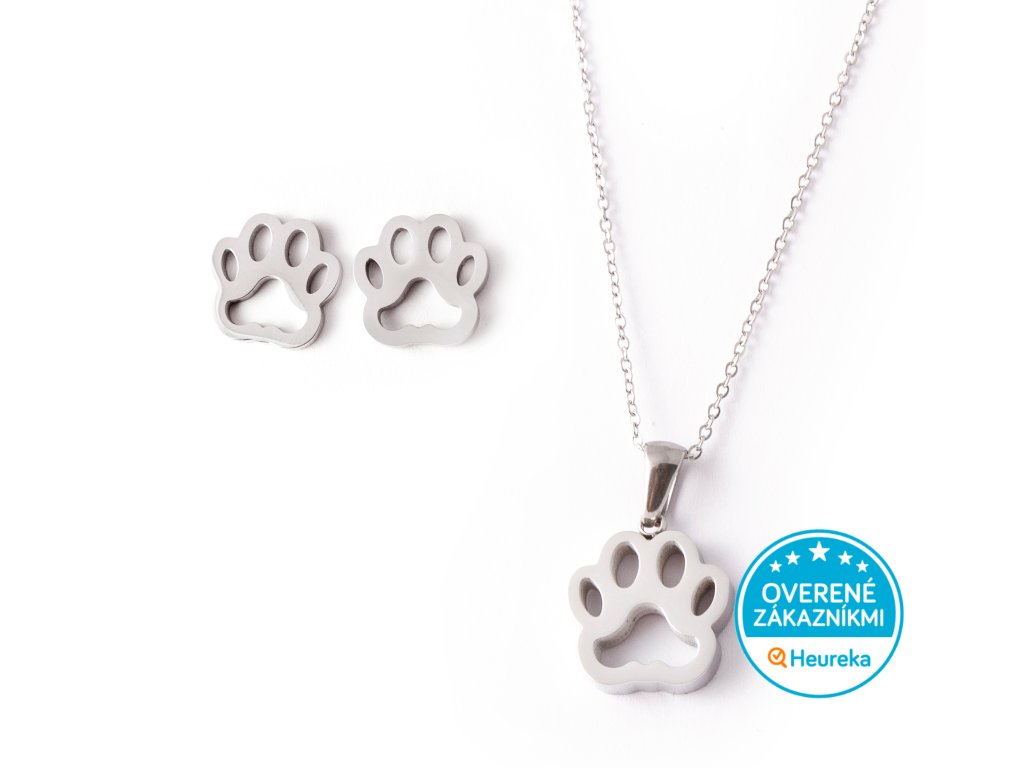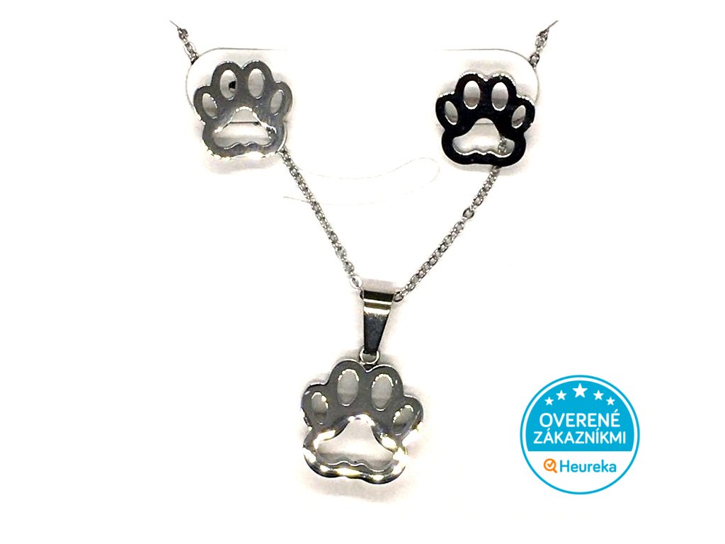 Set náušnice a náhrdelník mačacia labka - chirurgická oceľ
